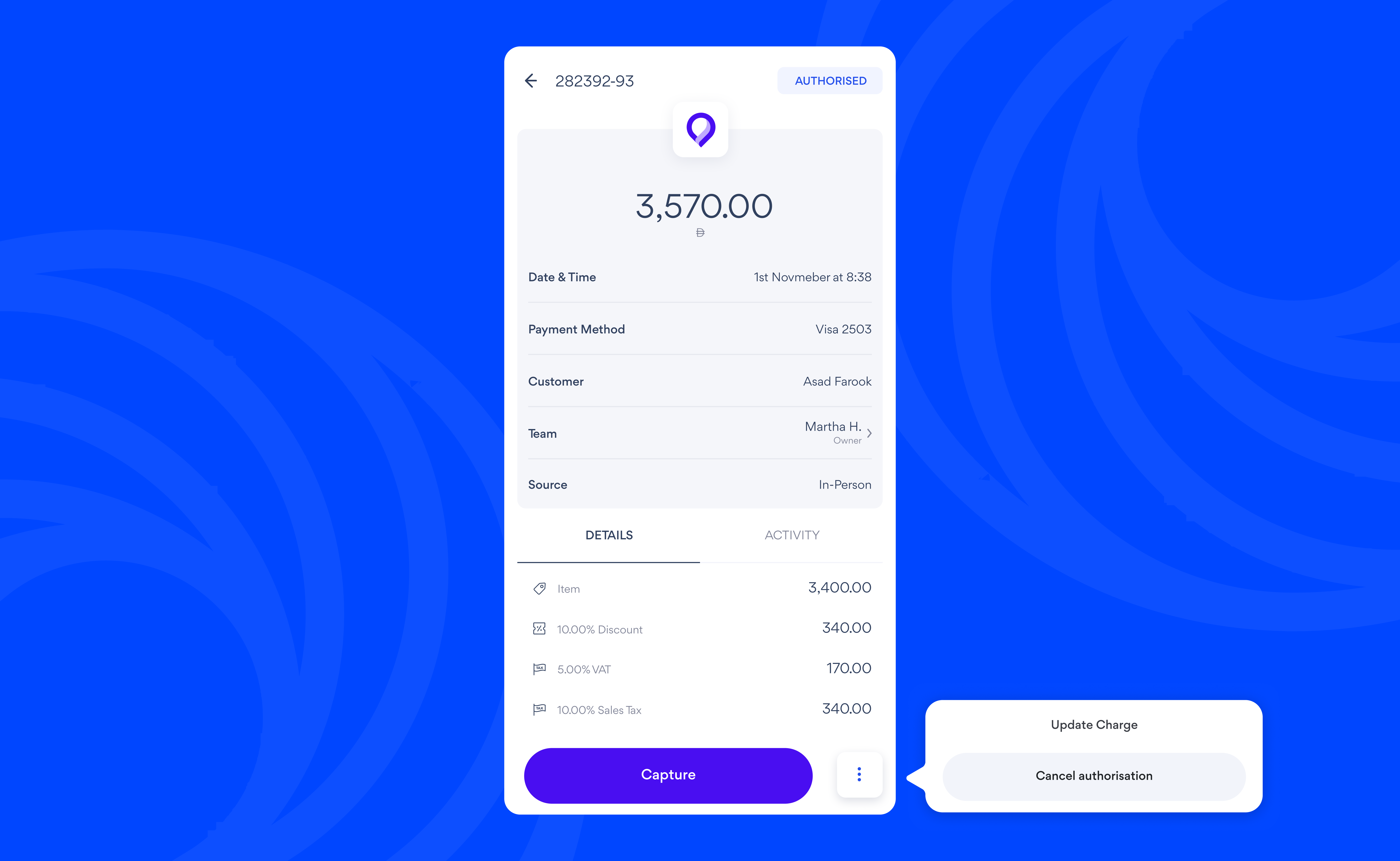 Authorising charges allows you to hold funds from a customer's card without collecting them immediately. This feature is only available for the Card Form method. At a later time, you can choose to capture or cancel the payment depending on your business needs.