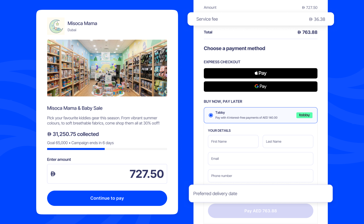 - Toggle Tabby and Tamara to control whether they're available as payment options for this Campaign