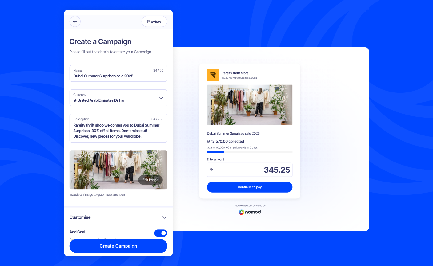 Campaign helps you group and track payments for a specific project, event, or cause, all in one place. Instead of using multiple Quick Pays, you can create a Campaign to consolidate payments for a single purpose, like a pop-up shop or a drive.