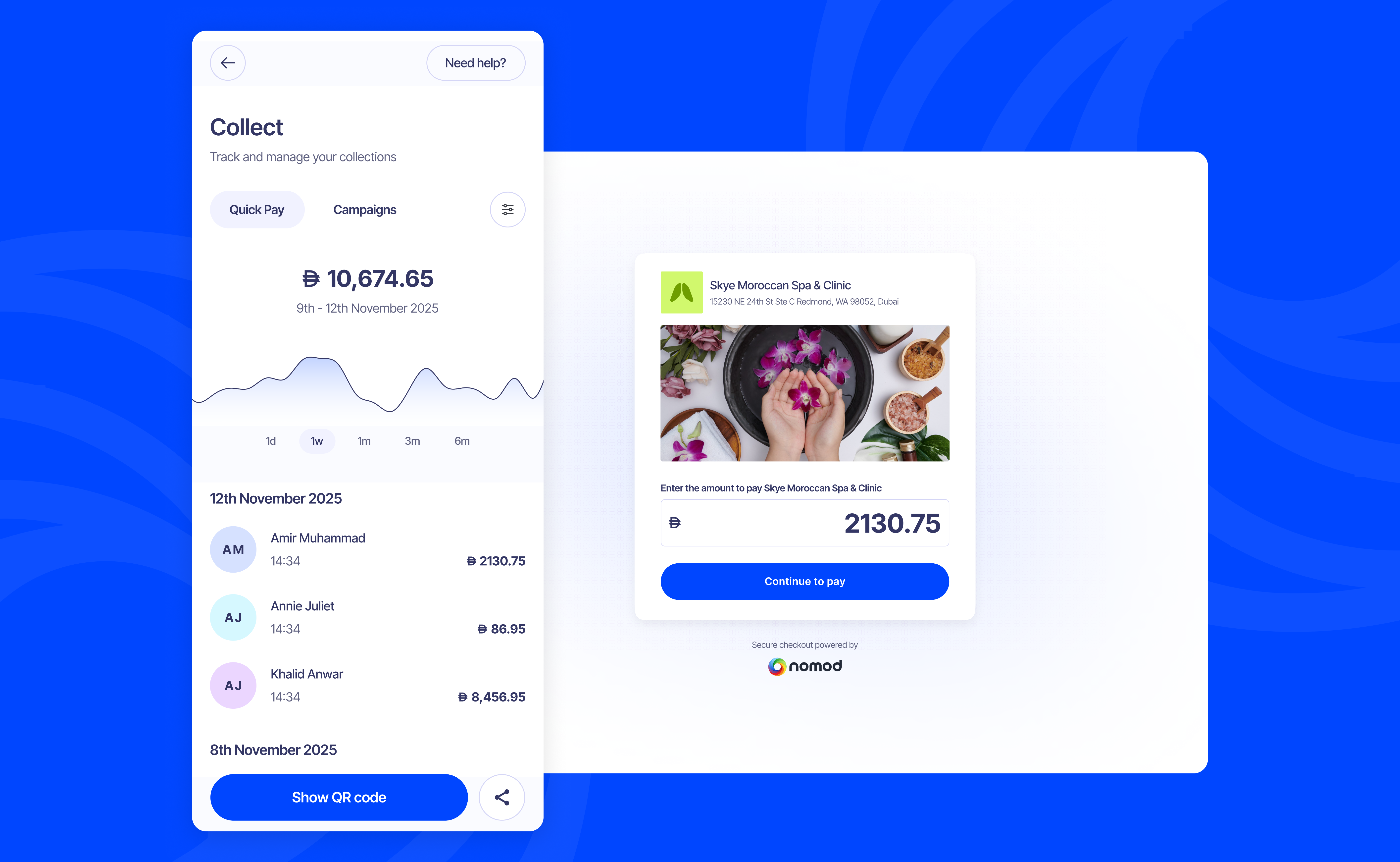 Collect lets your customers pay any amount by simply typing it in, giving them full flexibility wherever they are. Collect is accessible by your customers via a QR code or a link and is designed to give your customers control over payments in a way that is seamless for you. You can use Collect in two ways: Quick Pay and Campaign.