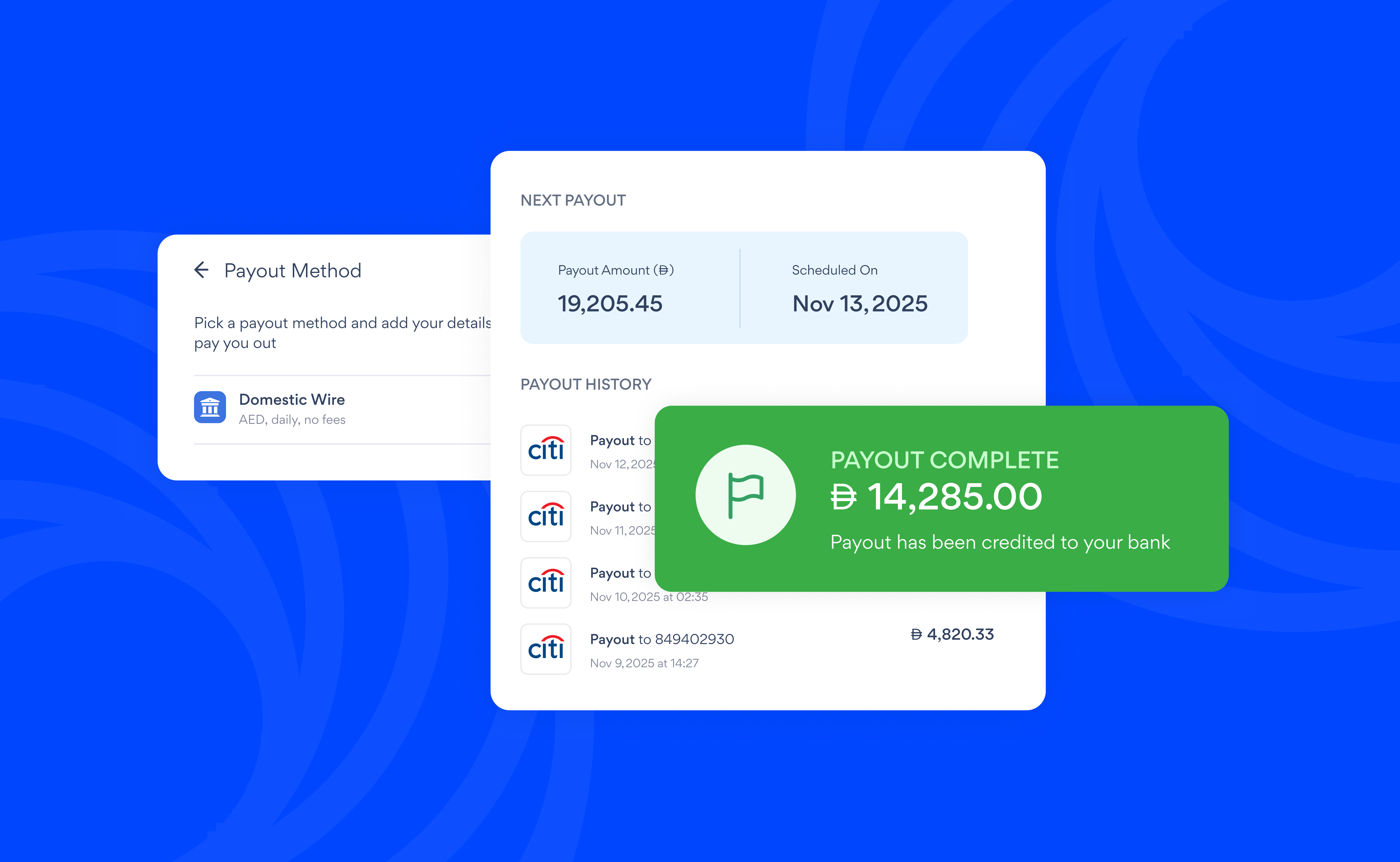 All payouts are made via domestic transfers.