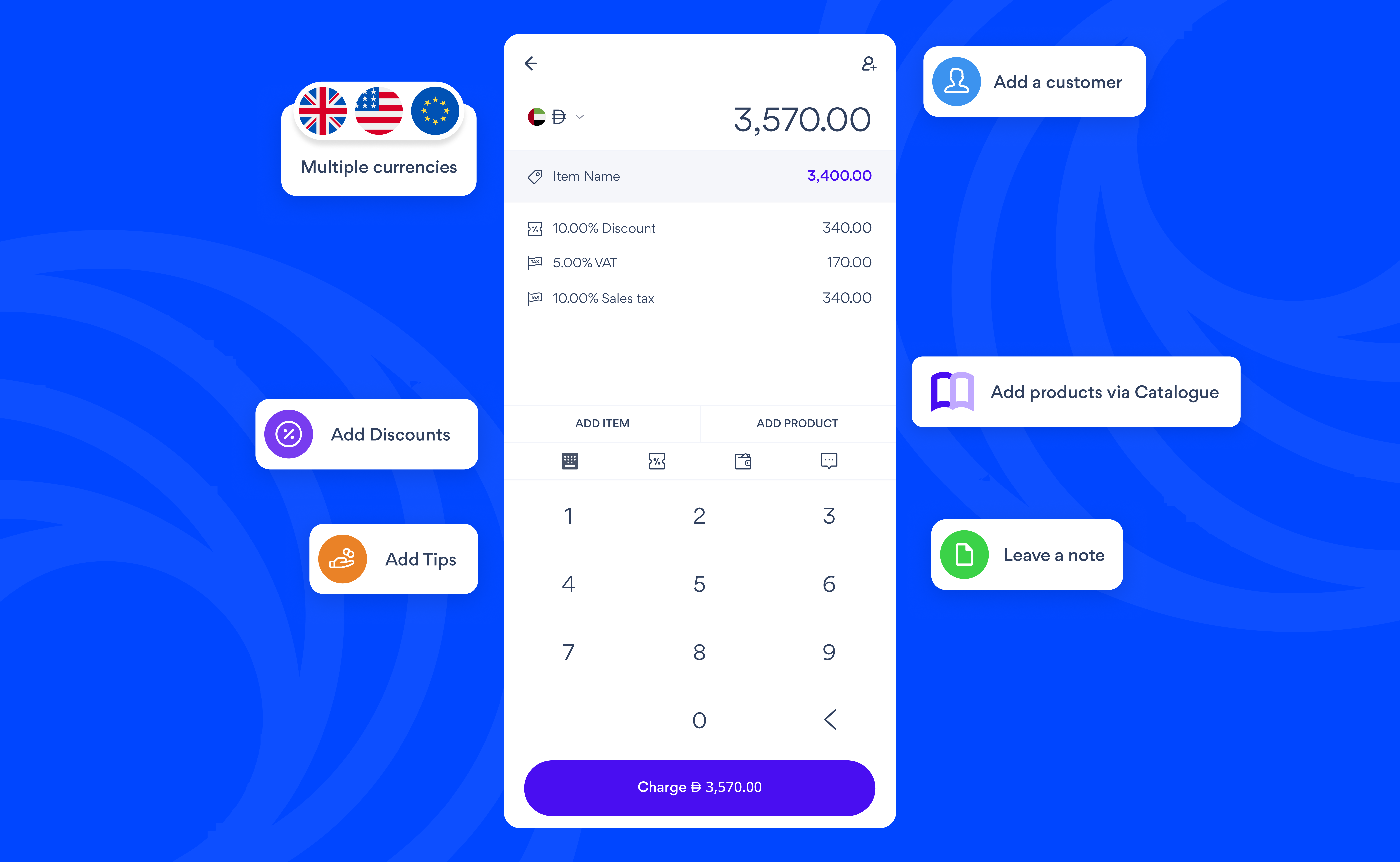 Tailor your In-Person payments to each transaction by adding valuable details like the items you're selling, the customer you're selling to, automatically-calculated discounts, and more.