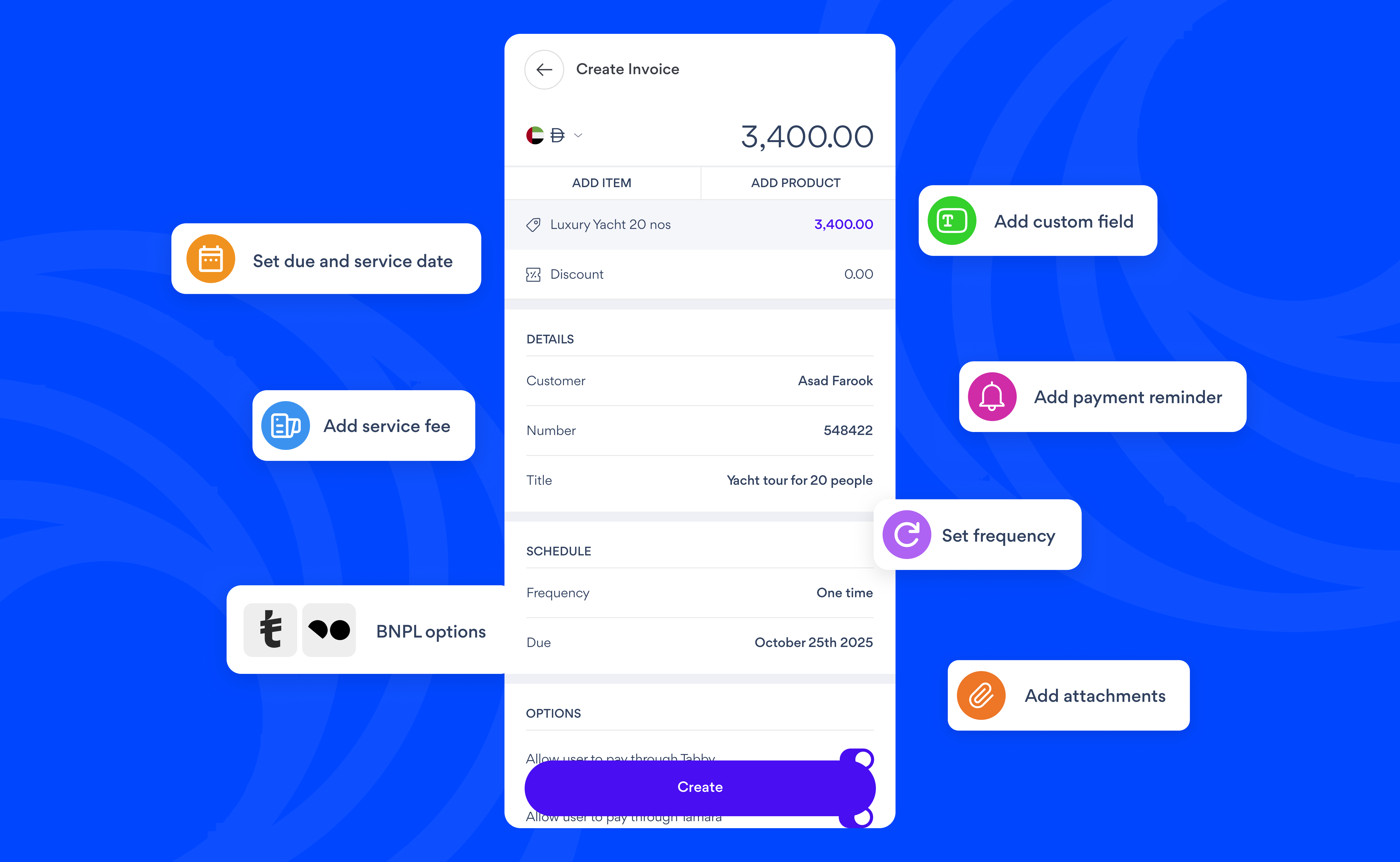 Every Invoice you create is packed with helpful features to tailor your offers and speed up payments. Here's what you can control when creating one: